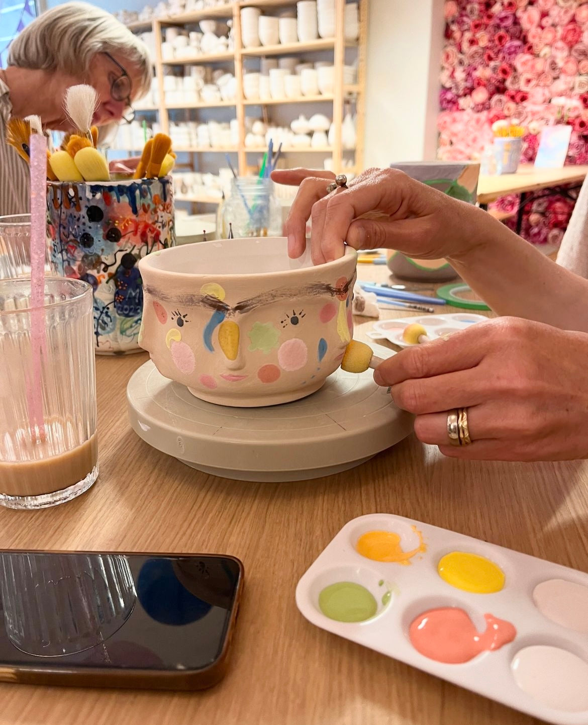 Er i et selskab på minimum 8 personer har vi mulighed for at arrangere det hyggeligste arrangement for jer. Til arrangementet vil der være inkluderet en valgfri drikkevare, et valgfrit stykke keramik til maks. 265 kr og lækre snacks. En standard pakkeløsning som denne koster 310kr pr. deltager. Har du interesse i at afholde sådan et arrangement, eller har du spørgsmål til vores pakkeløsning, så tøv ikke med at kontakte os på booking@kreasjoner.info. De perfekte rammer til fødselsdagen, julefrokosten, polterabend osv!